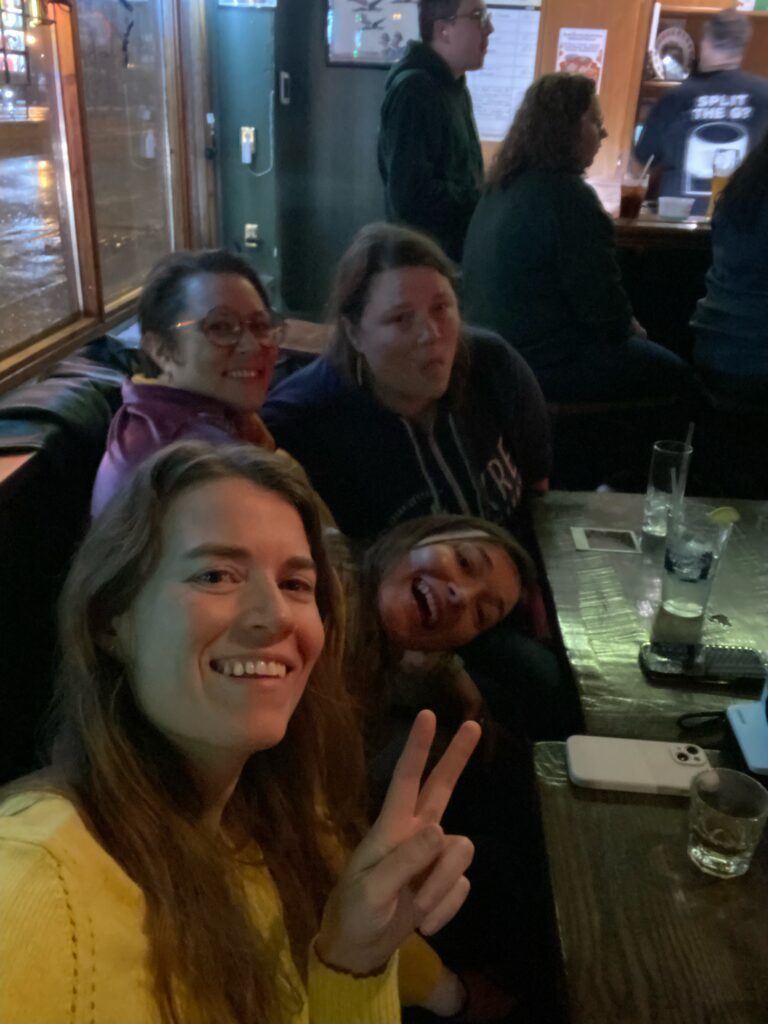 Two of my sisters and I surprised my other sister for her 40th birthday! Myself and Whitney flew back to Minnesota and literally jumped up from behind my otherโs sisterโs couch and yelled, โSURPRISE!โ It was a thing. ๐ We had SUCH a fun weekend!!! We saw Hounds of Finn live at a bar (in the pouring rain, haha), went to a Minnesota Frost Game(!!), and just had the best time ever. It was such a great idea on Whitneyโs part and Iโm so thrilled we could make it happen for Mallo!